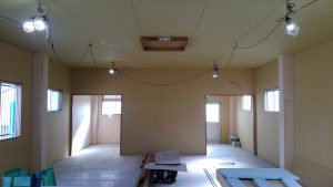 この後は、クロス工事→照明取り付け→キッチン取り付け→トイレ器具取り付け と ガラッと